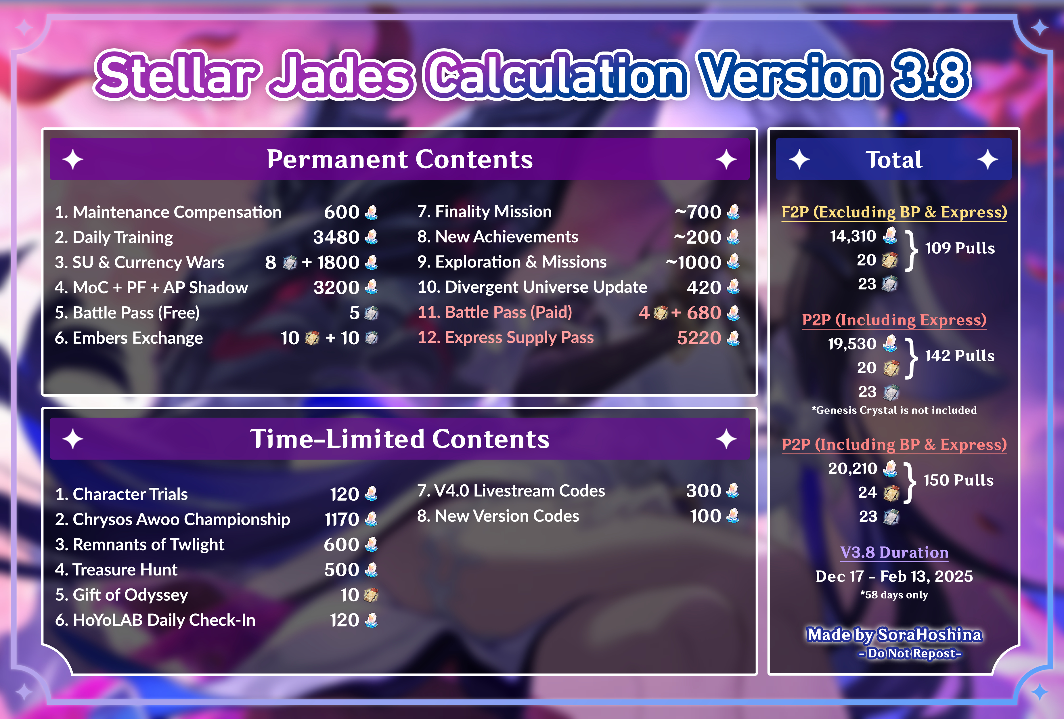 Honkai: Star Rail Version 3.8 Stellar Jade Pull Count